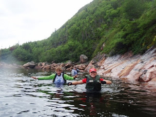 Day three was the journey from St. Paul to Middle Bay, population 35. In between stood some gnarly hills on the bike, a 1 km kayak portage, and a circumnavigation of yet another island. The home cooking in St. Paul had really revived us though, and we were also treated to more spectacular views (including a whale rib) and some great coastering: